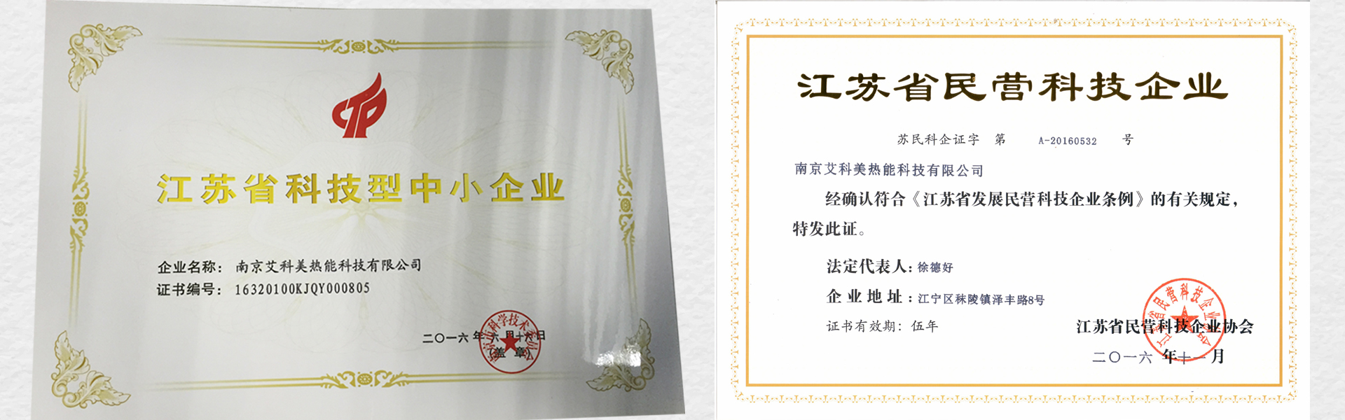 荣获江苏省科技型中小企业和民营科技企业称号