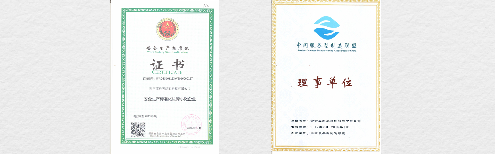 荣获安全生产标准化和中国服务型制造联盟理事单位称号