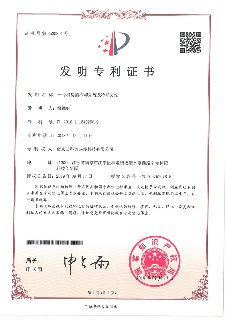 发明专利——一种机房的冷却系统及冷却方法