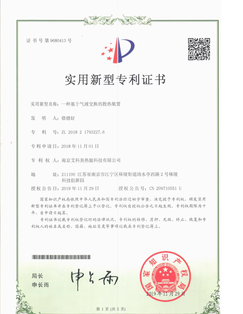 实用新型专利——一种基于气液交换的散热装置